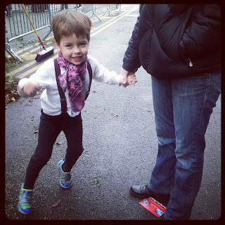 Today is the big day: first day of kindergarten. Yay! Sasha was not so excited. The most he would admit to is feeling "kinda good, kinda bad" about his first day of school. We walked him to school and even got to go into the classroom for a few minutes. He was hesitant about where to sit because half of the seats were already occupied. Then he saw his new friend Ronan who said, "Hey dude, what's up?" Happily, he sat down next to him and put his backpack on the back of the chair like Ronan showed him. Then he turned to me and Mama and said, "I think I'm starting to like school already!" He waved goodbye and didn't look back.